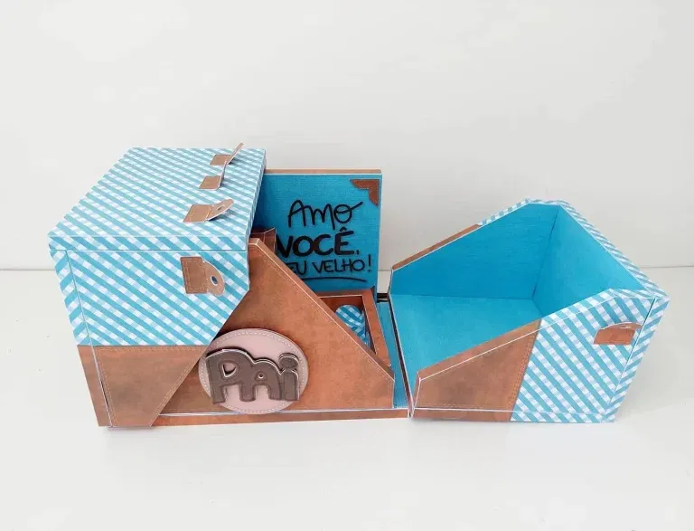 No entanto, a customização é muito simples e intuitiva para quem já trabalha na área. Para que a sua decoração de presente fique completa, basta abrir o ficheiro no seu computador e preparar as peças. Dessa forma, terá o seu arquivo digital caixa dia dos pais studio pronto para a produção em instantes.