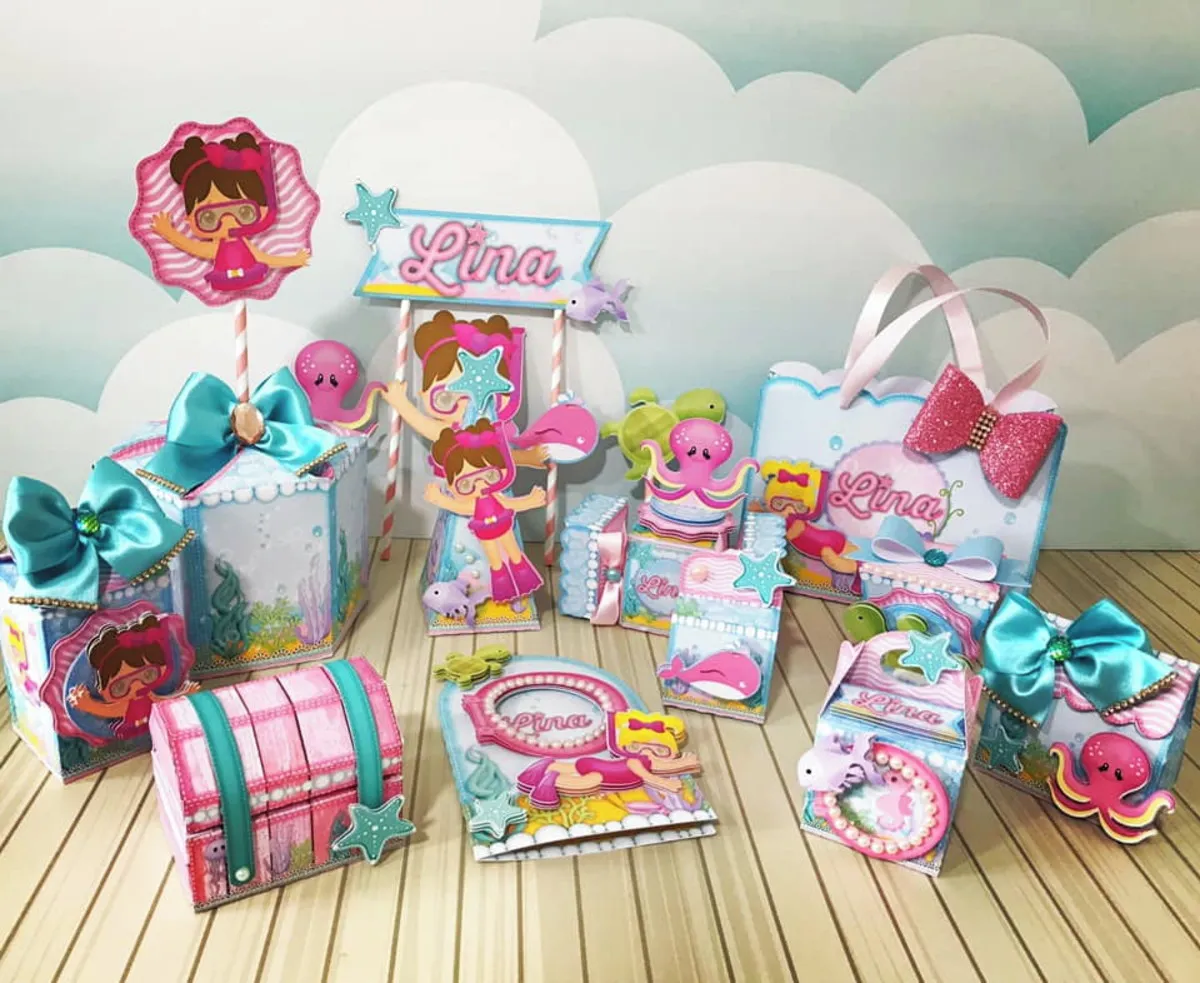 Ademais, o tema fundo do mar rosa permite uma exploração criativa muito vasta no nicho de temas infantis. Por exemplo, você pode utilizar os elementos de forma individual para compor um topper de bolo único ou até mesmo apliques para caixas cenário de alto padrão. Como as ilustrações são de alta qualidade, a vivacidade das cores mantém-se impecável mesmo após a impressão em diferentes tipos de papel. Portanto, o seu ateliê ganha autoridade ao oferecer produtos que seguem as tendências mais atuais da decoração de eventos femininos.