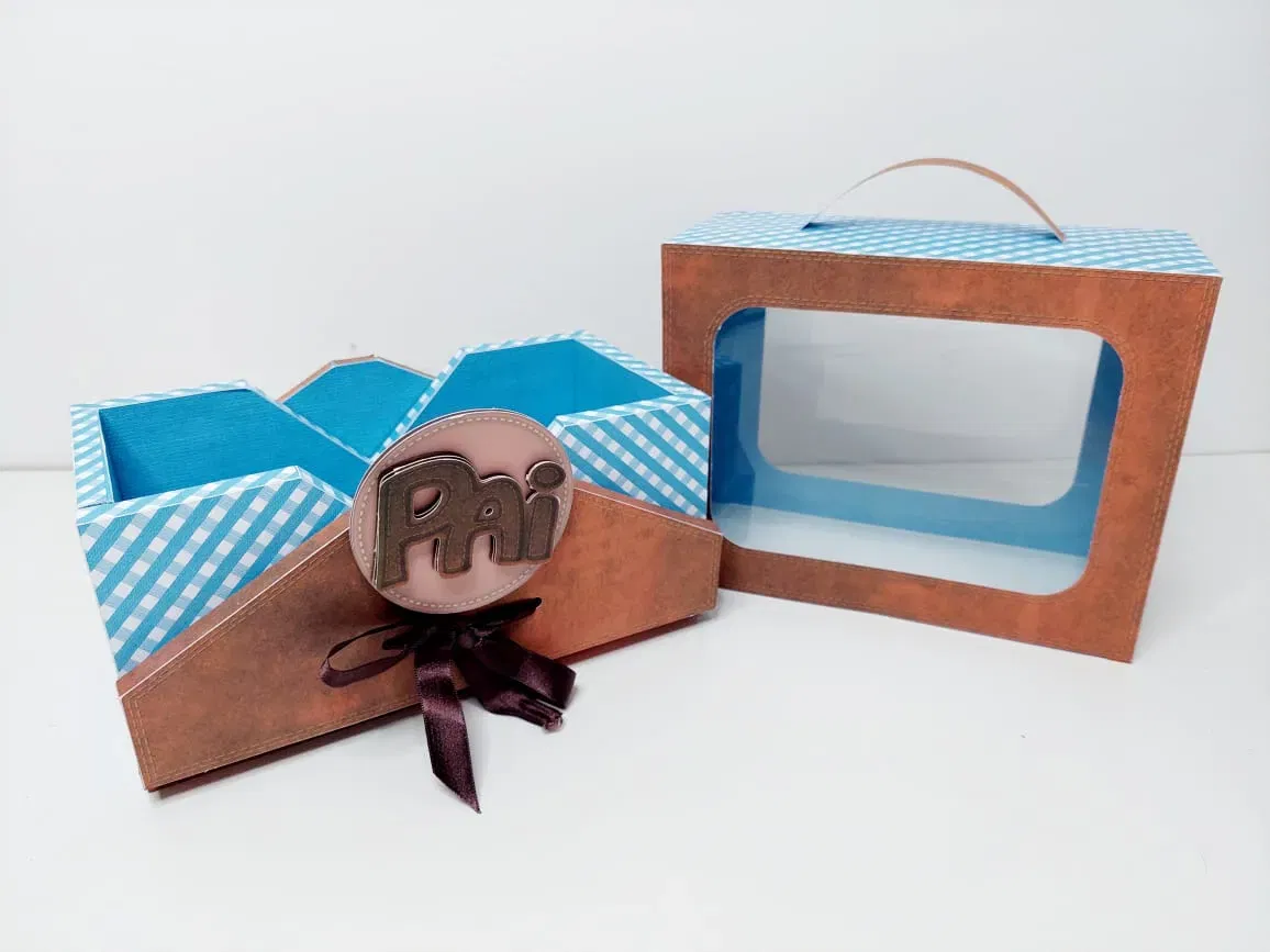 No entanto, a customização é muito simples e intuitiva para quem já trabalha na área. Para que a sua decoração de presente fique completa, basta abrir o ficheiro no seu computador e preparar as peças. Dessa forma, terá a sua Festa na Caixa Tema Dia dos Pais pronta para a produção em instantes.