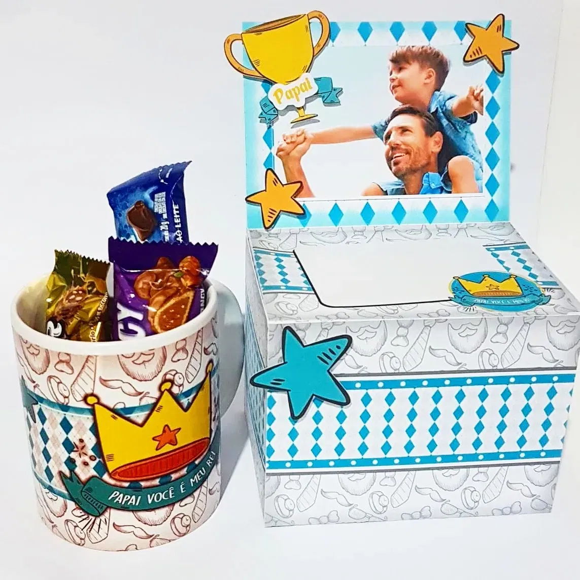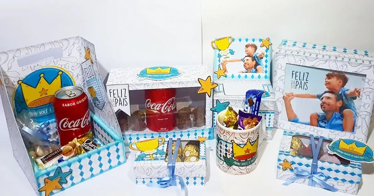 No entanto, a customização é muito simples e intuitiva para quem já trabalha na área. Para que a sua decoração de presente fique completa, basta abrir o ficheiro no seu computador e preparar as peças. Dessa forma, terá o seu Festa Tema Dia Dos Pais pronto para a produção em instantes.