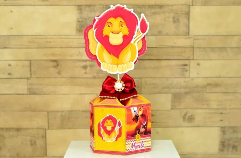 Manter a competitividade exige um catálogo que atenda a pedidos de “pegue e monte” com total segurança técnica. Ter este projeto salvo em seu computador permite que você aceite encomendas de última hora, pois os moldes já passaram por testes de montagem rigorosos. Como o tema Rei Leão é universal, este material não perde a validade comercial. Além disso, você pode reaproveitar os elementos gráficos para criar outros itens coordenados, como tags de docinhos, aumentando a harmonia visual da celebração e o seu lucro por venda realizada.
